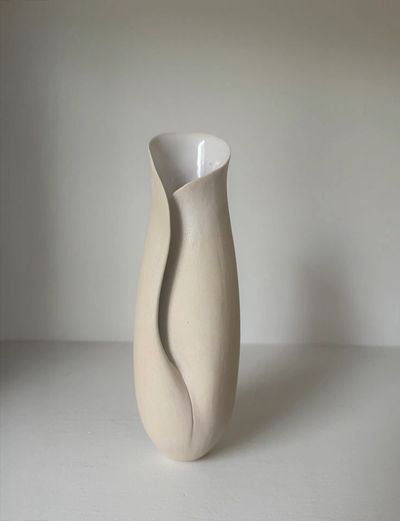 In navigation, a "circle" typically refers to a "great circle," which is the shortest path between two points on the Earth's surface. The great circle route is always considered as a first step in planning any ocean crossing, and the sailors in the 1700s would have determined their route relying on the two methods available: dead reckoning, the manual mathematical equations worked to find one’s position, as well as celestial navigation, the act of reading the skies at night. Here, porcelain clay materializes into sea circle collars, three encompassing a celestial being, imagined to have emerged from the deep to clear the way for the good luck of “fair skies and following seas.”