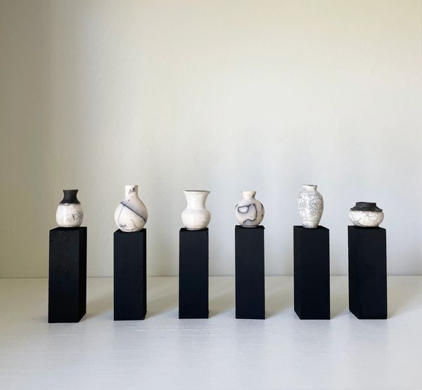 Wheel-thrown, raku, horsehair firing