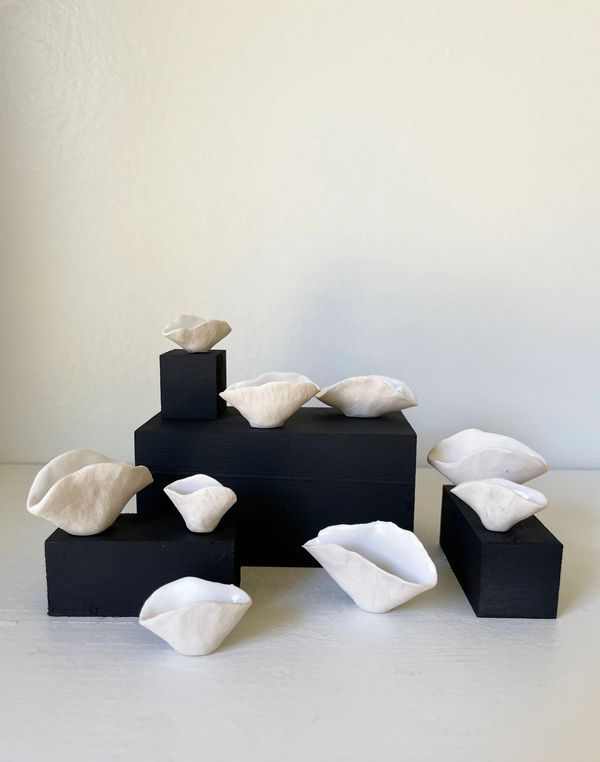 Hand-formed, porcelain, glazed and unglazed